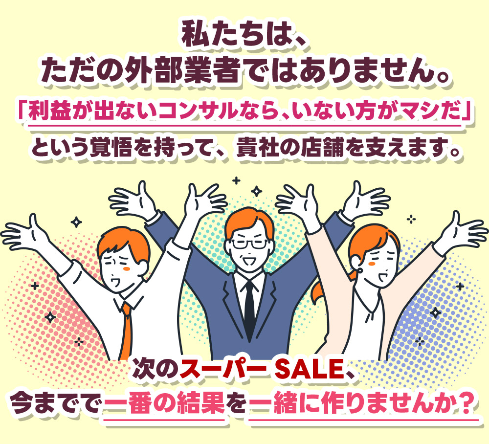 お忙しい店長様の「考える時間」と「作業する時間」を削減するのが弊社の役目です。